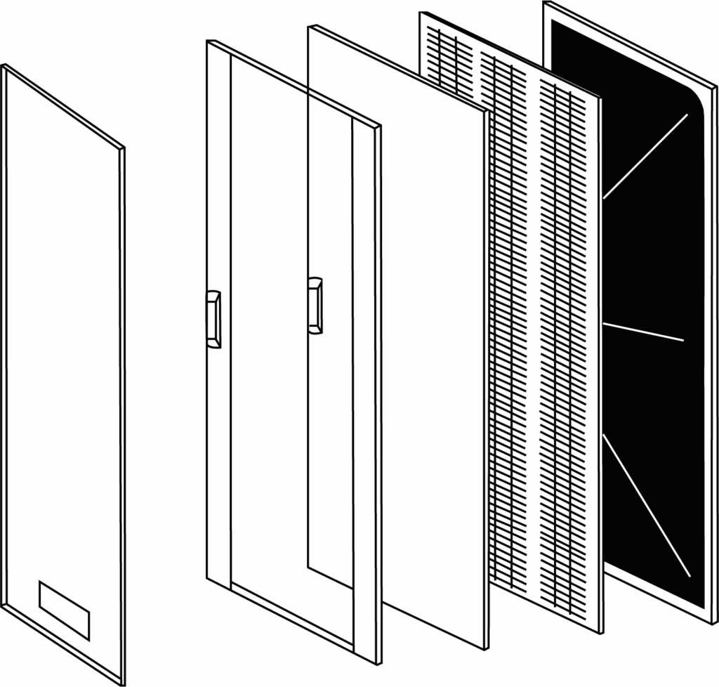 Choix de portes disponibles (verre, pleine, perforée, ventilée – perforation 86%)