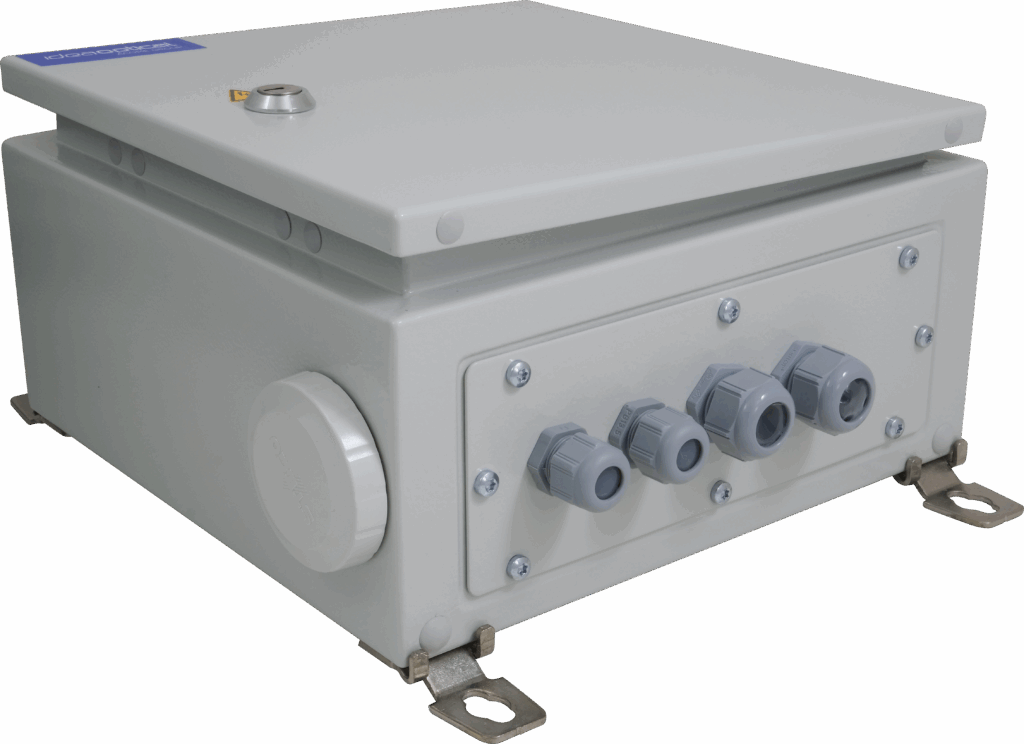 - des presse-étoupes de différentes tailles garantissant l’étanchéité du coffret et permettant la pénétration des câbles ;